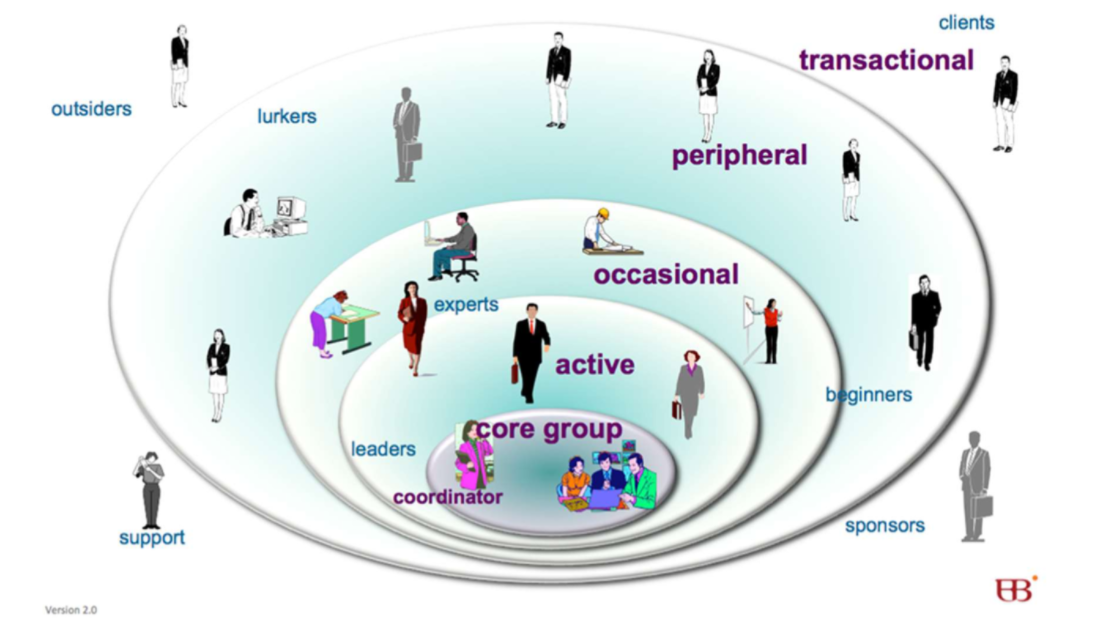 - Invite different levels of participation; there typically exists a small core of community members who are highly motivated and involved in steering community values and efforts. The CoP should also accommodate those less involved who also wish to contribute to the mission of the community.