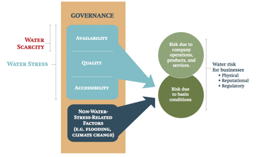 Figure 1. Relation between water challenges to water risk (CEO Water Mandate, 2014).